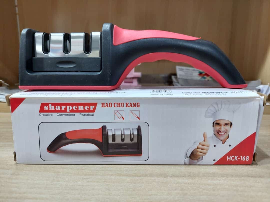 Professional Knife Sharpener with 8-Wheel Blades & Sanding Stone | Durable Plastic Grip, Coarse & Fine Sharpening Slots for Kitchen Knives | Compact & Reliable Knife Filer for Quick Sharpening & Polishing Keep your kitchen knives razor-sharp and ready for precision cutting with this Professional Knife Sharpener. Designed with 8-wheel blades and an additional sanding stone, this tool delivers exceptional sharpening results – from repairing dull or damaged blades to finely polishing sharp edges. Made with a durable plastic body for a strong and comfortable grip, this knife sharpener is built for long-lasting use and reliable performance. It features two sharpening modes: Coarse Slot – Ideal for dull and damaged knives, restoring their cutting power. Fine Slot – Perfect for polishing, touch-ups, and maintaining already sharp blades. Compact in design, it fits easily into kitchen drawers or cabinets, making it a convenient everyday tool for home chefs and professionals alike. ✨ Key Features: Knife Sharpener & Filer with 8-wheel blades for effective sharpening Coarse slot for dull/damaged knives, fine slot for polishing & touch-ups Built-in sanding stone for additional blade care Durable plastic body with comfortable grip Compact, lightweight & easy to store Suitable for a wide range of kitchen knives Reliable, quick, and easy to use۔